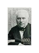 The name of President Jón Sigurðsson is inseparably linked to the establishment of an Icelandic nation state. He started a peaceful struggle for political and economic independence in Iceland around the middle of the 19th century and excelled among his contemporaries as a national leader of the highest calibre. On the occasion of the 200th anniversary of the birth of Jón Sigurðsson on June 17th 2011 the Icelandic Parliament, Althing, recommended that the Prime Minister form a committee to prepare for the anniversary celebration. The committee proposed that Iceland Post commemorate the anniversary with a special stamp issue. Iceland Post accepted this proposal, taking into account that stamps have been issued on both the 100th and 150th anniversaries of Jón Sigurðsson. A stamp designing competion was held in cooperation with the Federation of Icelandic Graphic Designers. The winner was Borgar Hjörleifur Árnason. The selection committee found his proposal „Two Kinds of Time – Jón the younger and older” both traditional and very well conceived. Iceland Post will issue these stamps on June 17th, 2011.