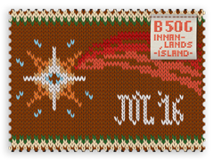 In former times in rural Iceland, people worked with great zeal to complete the work that had to be done before Christmas. Work on wool products took precedence over all other labour. Hand-knitted garments meant that you had a balance at the merchant’s and the woollen products had to be finished in time for Christmas. It was important that everyone was well dressed when the Christmas celebrations came, and that no one fell victim to the Yule Cat, a mythical creature used to make sure people finished their chores before Christmas. “Everyone gets something nice, at least candles and cards”, according to a much-loved Christmas carol. Nowadays it is customary to knit sweaters for Christmas with various patterns associated with the festivities. Two such motifs can be seen on the stamps, the star of Bethlehem and a Christmas candle. Sometimes knitted covers are made for Christmas decorations. These covers are often delicate and make for beautiful Christmas tree decorations.